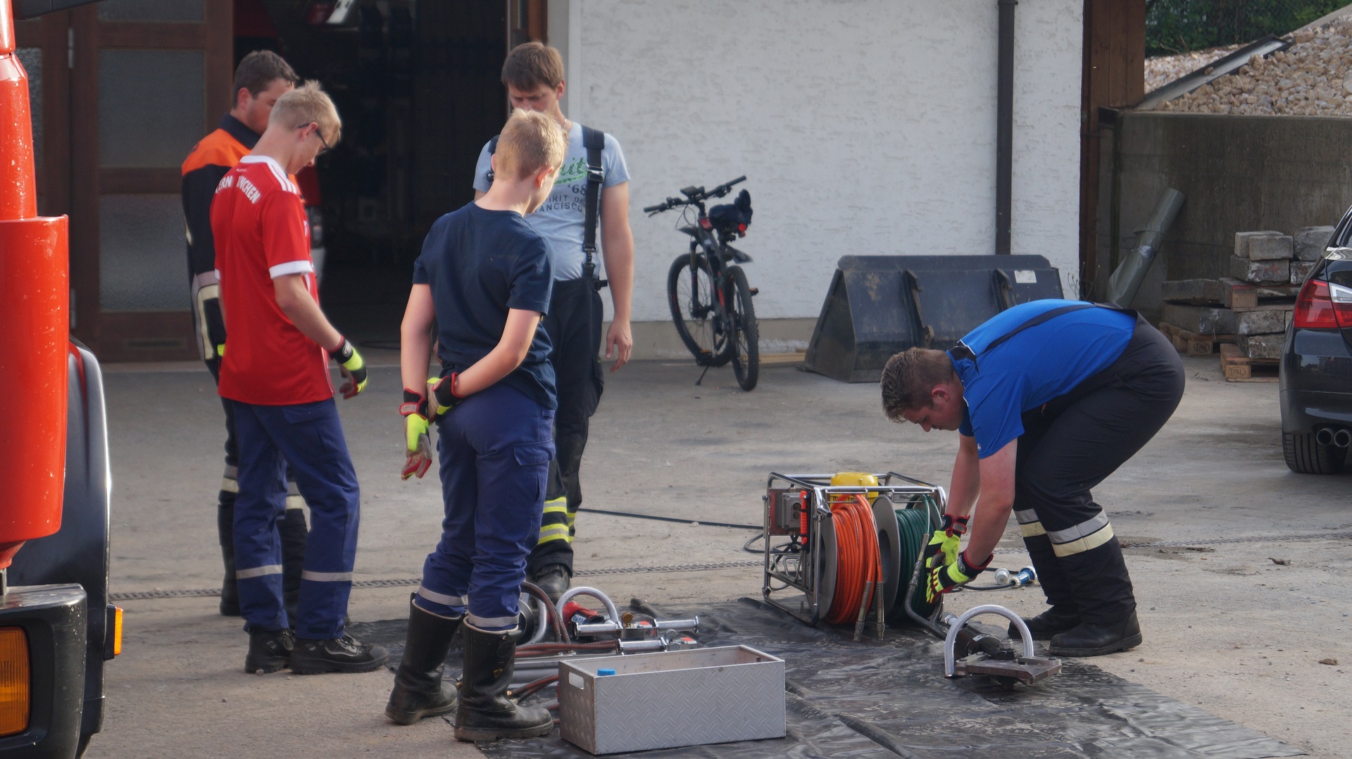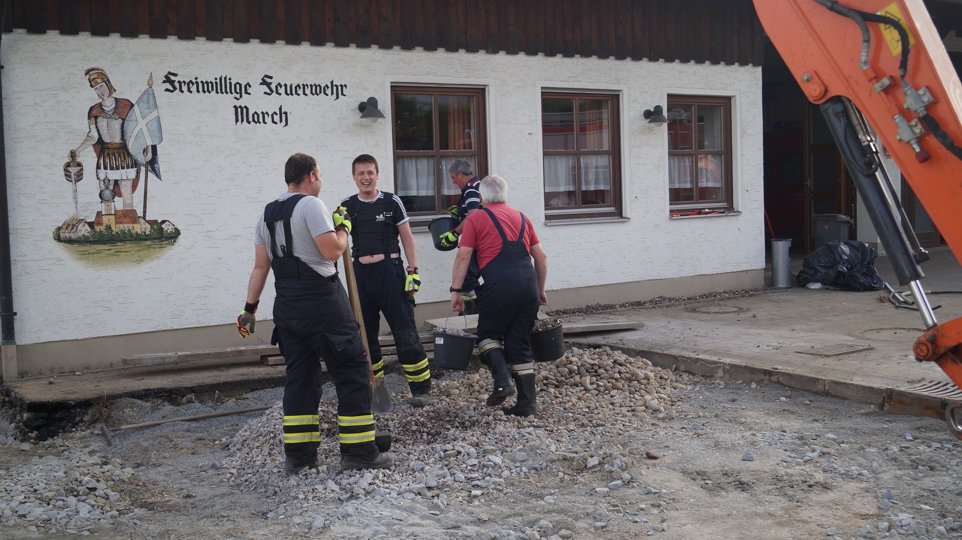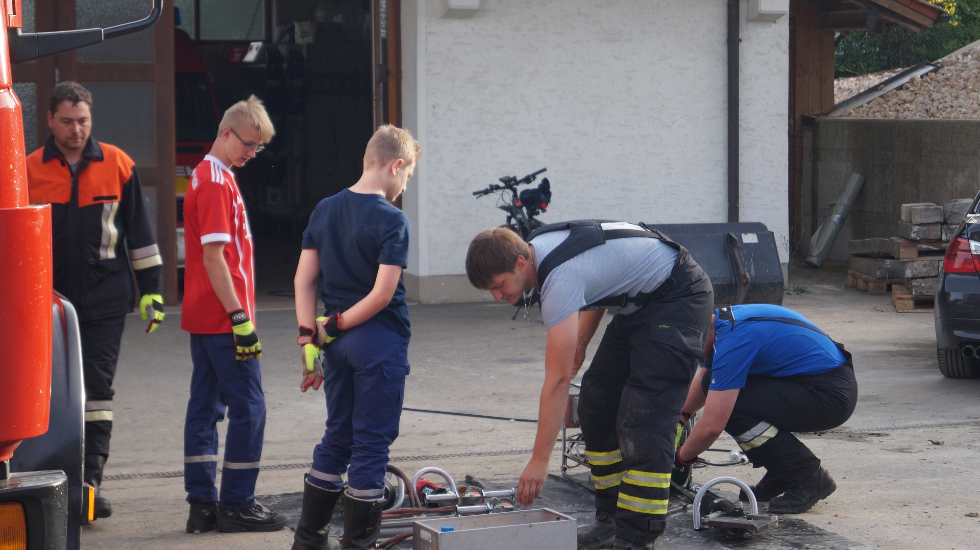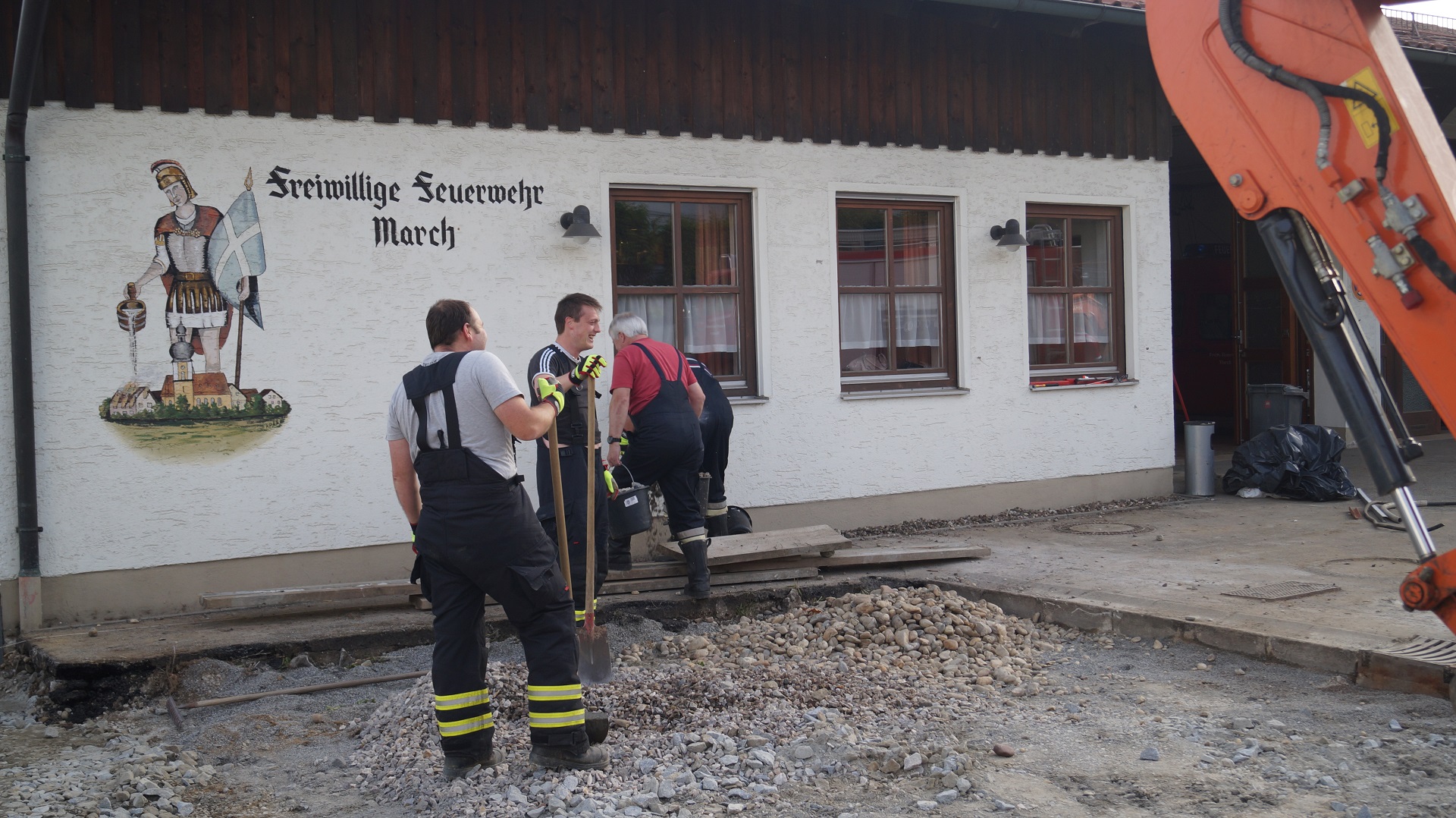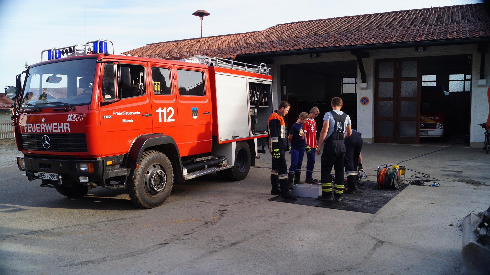 Unter der Anleitung von GF und Jugenwart Wolfgan Kilger wurde die Jugend und neue Aktive in den THL Satz der FF March eingewiesen. Ein weiter Teil der Aktiven wurde zum Arbeitseinsatz am Gerätehaus abgestellt. Auch das inner des Gerätehauses hat durch die Bauarbeiten gelitten, so wurde auch noch eine Putzgruppe gebildet.
