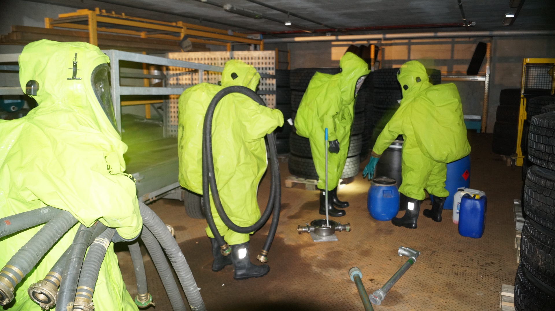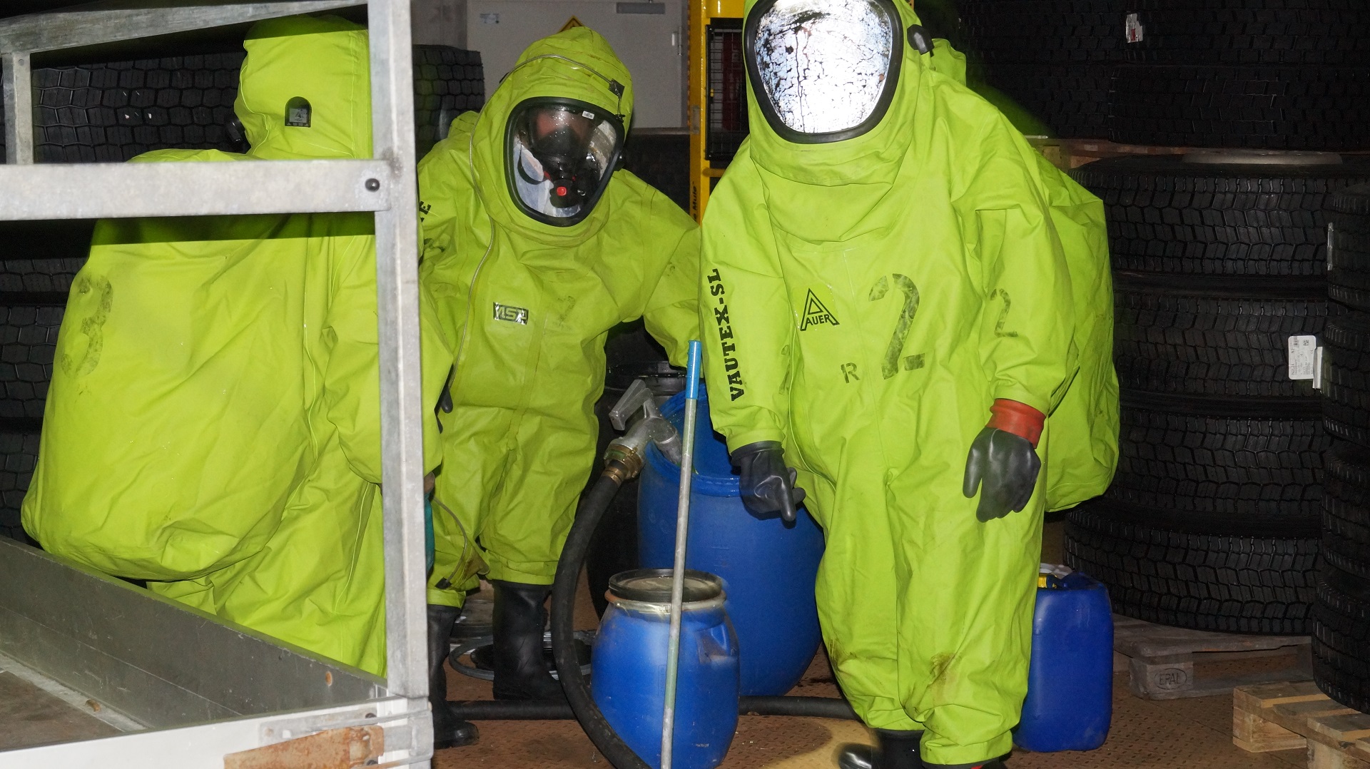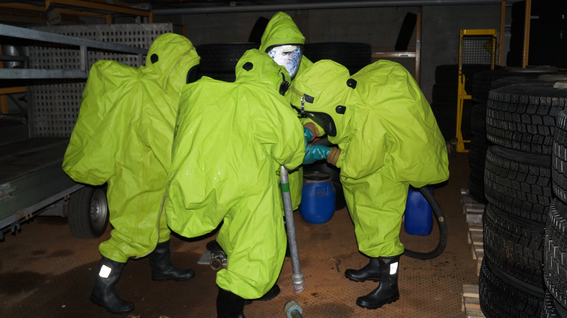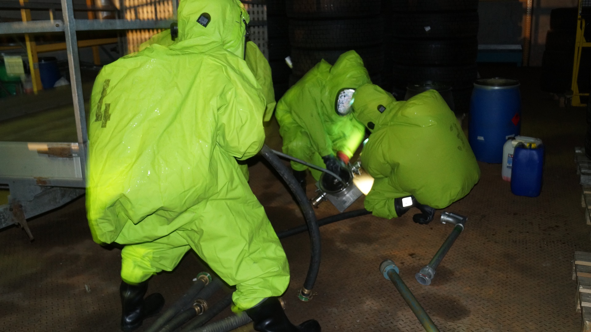 Die Aufgabe der FF March bestand darin einen Schaumteppich zur Brandabwehr auszulegen. Gleichzeitig wurden unsere CSA ( Chemikalien Schutz Anzug ) -Träger zur Gefahrstoffbeseitigung eingesetzt.