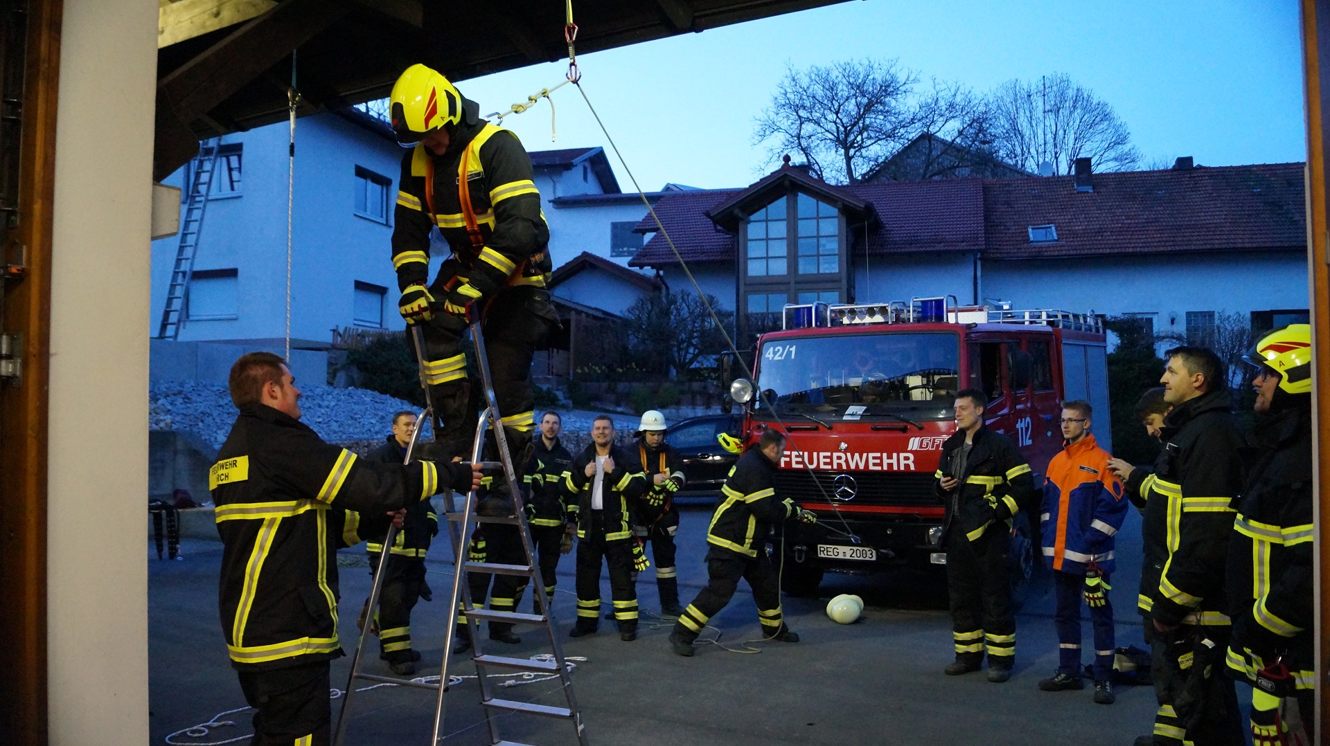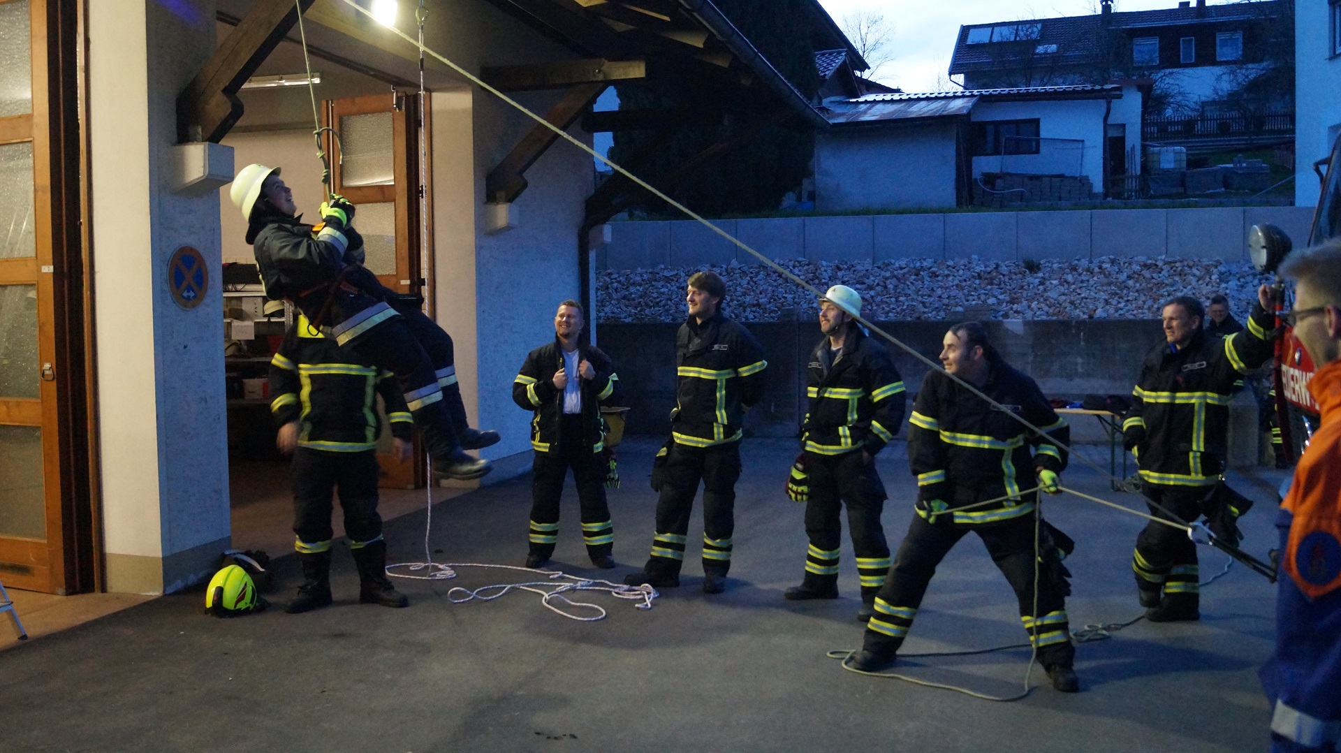 An diesem Samstag abend packten wir unsere neuen Absturzsicherungen aus. Zwei Stationen bauten die Ausbilder Hans Peter Treml und 1. Kdt Ftitz Treml auf.